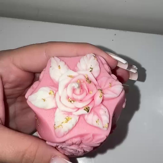 Son design unique est un véritable chef-d'œuvre : de magnifiques roses délicatement disposées autour de la bougie, accentuées de feuilles d'or étincelantes qui apportent une touche de glamour.🌿✨